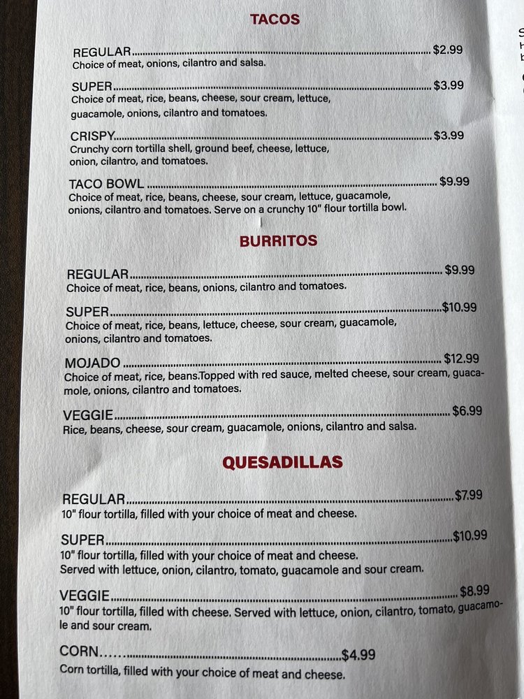 From their crispy Chicken Flautas served with a colorful array of toppings, to the hearty Chile Relleno Plate featuring a perfectly stuffed poblano pepper, each dish promises a taste sensation. Don't miss the sumptuous Mojado Burrito, which is a crowd-pleaser, smothered in red sauce and melted cheese. The Quesadillas are equally inviting, providing a comforting and cheesy experience.
